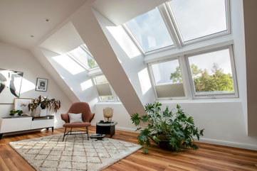 Beleuchtung neu erleben: Haben Sie sich jemals gefragt, wie sich natürliche Beleuchtung auf Ihr Zuhause und Ihr Wohlbefinden auswirkt? Unsere Dachfenster bringen das Tageslicht direkt von oben in Ihre Räume und verwandeln sie in helle, lebensfrohe Bereiche, die bis zu dreimal heller sind als mit herkömmlichen Fenstern.